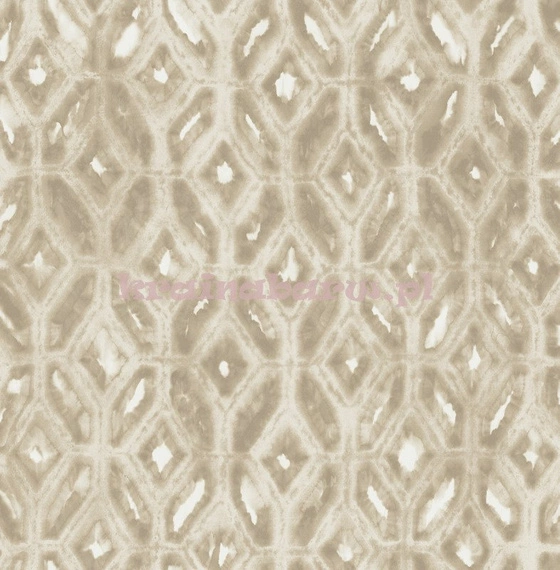 Tapeta z wzorem z rozmytymi, akwarelowymi ornamentami. Kolor beżowy.