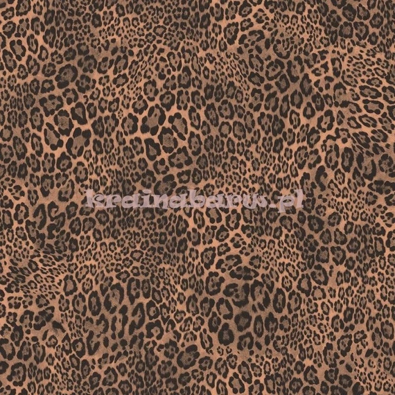Tapeta o wyczuwalnym w dotyku wzorze. Jest pokryta cętkami pantery. Kolor czarno pomarańczowy.