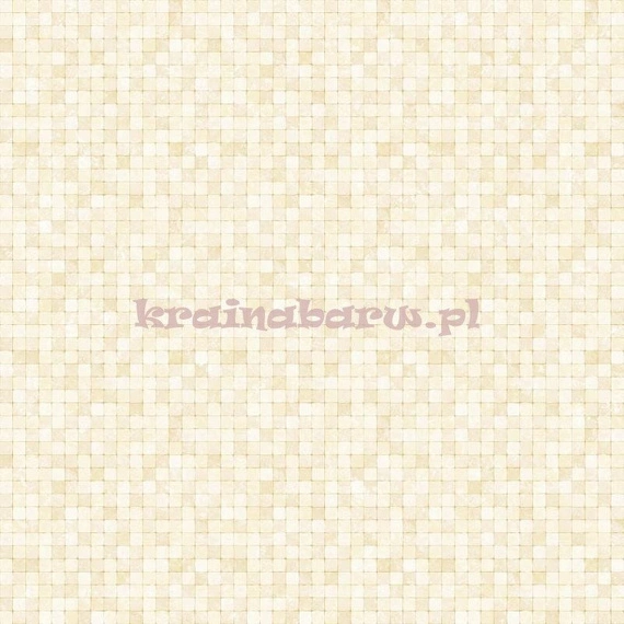 Tapeta o wyczuwalnym w dotyku wzorze. Jest pokryta drobnymi kwadracikami. Kolor jasny beżowy.