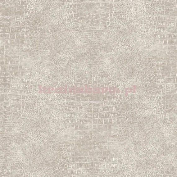 Tapeta o wyczuwalnym w dotyku wzorze. Przypomina on skórę krokodyla. Kolor szary.