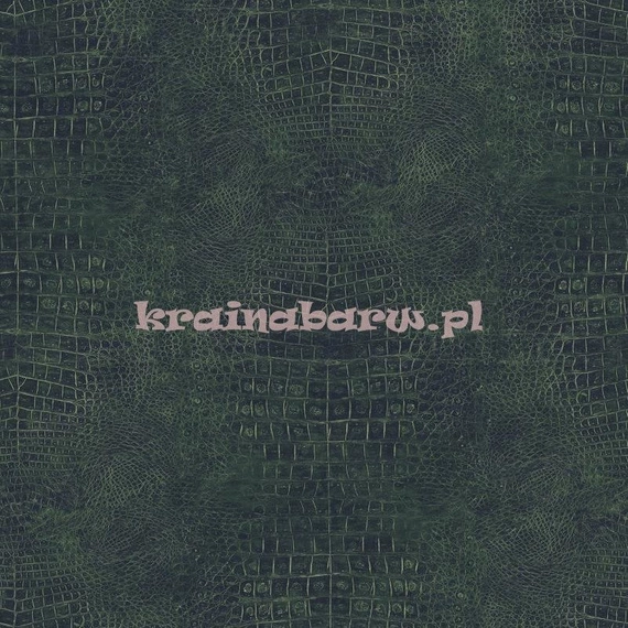 Tapeta o wyczuwalnym w dotyku wzorze. Przypomina on skórę krokodyla. Kolor ciemny zielony.