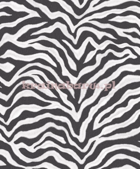 Tapeta o wyczuwalnym w dotyku wzorze. Przypomina skórę zebry. Czarno biała kolorystyka.
