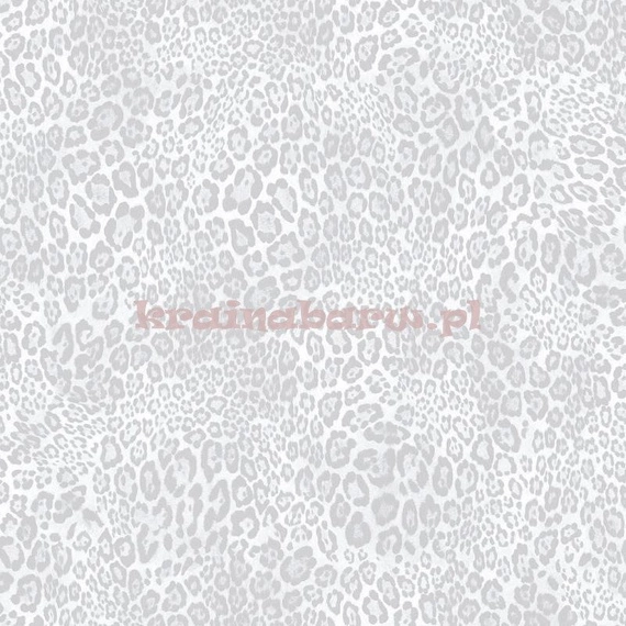 Tapeta o wyczuwalnym w dotyku wzorze. Jest pokryta cętkami pantery. Na tapecie przeważa biała kolorystyka.