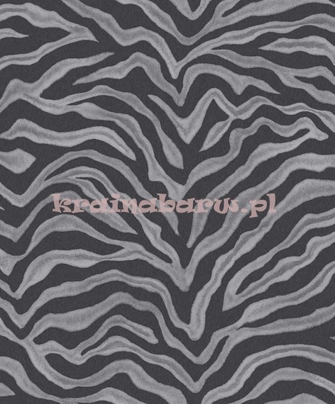 Tapeta o wyczuwalnym w dotyku wzorze. Przypomina skórę tygrysa. Czarno szarawa kolorystyka.