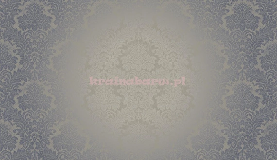 Tapeta z klasycznym ornamentem o wyczuwalnej, mieniącej się fakturze. Szaro srebrzysta kolorystyka z połyskującym beżem.