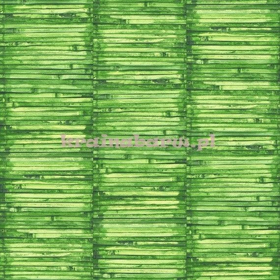 Tapeta przypominająca bambusową ścianę. Kolor zielony.