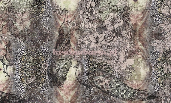 vintage, kwiat, rośliny, kwiaty, ptaki, pawie, pióra, Wonderwall