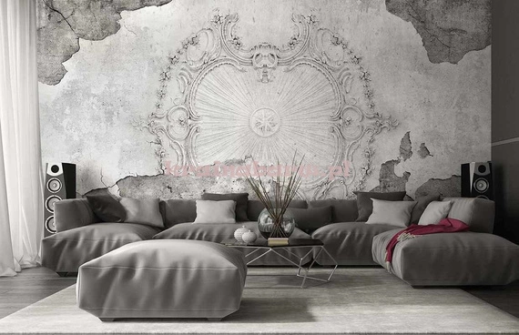 Fototapeta z nowoczesną grafiką, w dotyku lekko chropowata,sprawiająca wrażenie głębi i przestrzeni z efektem 3D. Stylowa duża ozdobna rozeta na tle przypominającym podniszczoną ścianę z pęknięciami, łuszczącym tynkiem, szarym betonem, stwarza niezwykły klimat. Fototapeta doskonale wpisuje się we współczesne aranżacje, tworząc wyjątkowe, zapadające w pamięć wnętrze.