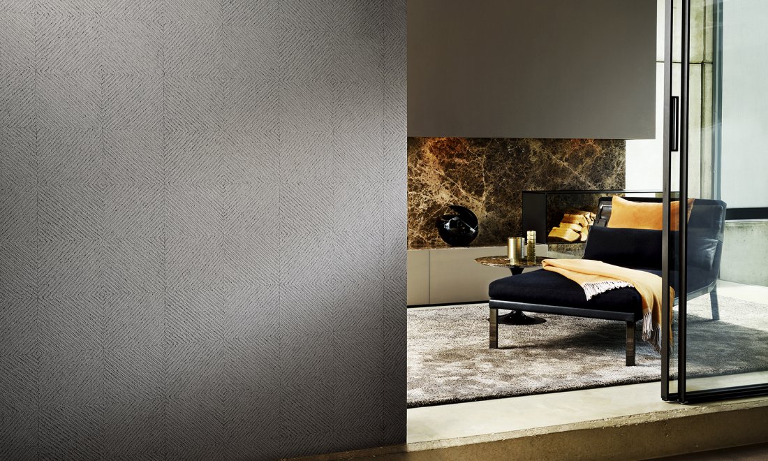 Tapety GRID z katalogu Arte Monochrome z ukośnymi graficznymi wzorami, inspirowane są splotem nici w tkaninach. Połyskujące linie,wyczuwalne w dotyku, zmieniają wygląd w zależności od ilości światła w pomieszczeniu. Tworzą na ścianie oryginalną, nowoczesną i elegancką dekorację. Dostępne są w pięciu kolorach.