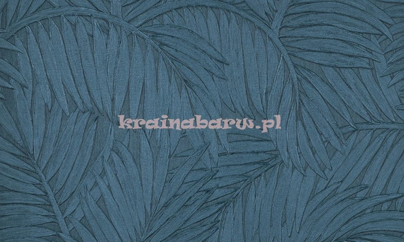 Tapeta z dużymi liśćmi palmy z wyczuwalną strukturą w niebieskim