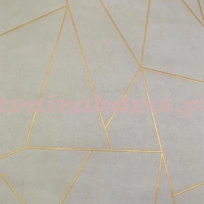 Tło tapety NW3500 Nazca jest delikatnie połyskujące w kolorze perłowo beżowym, po którym przebiegają złote lekko wypukłe linie.