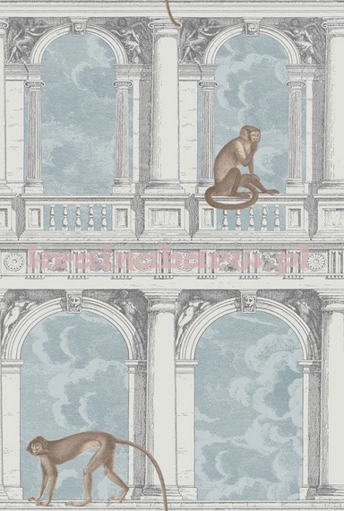 Tapety PROCURATIE CON VISTA to fasady znanego pałacu na Placu św. Marka w Wenecji, stanowią one plac zabaw dla psotnych małp, owiniętych wokół klasycznych łuków i ozdobnych balustrad. Narysowane w prostym stylu, w ponadczasowych kolorach zostały wzbogacone o dwa kolejne wybarwienia kolorystyczne.