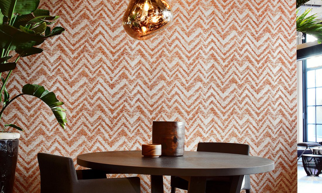 Tapety CADANCE to zygzaki popularne w latach 60.,często w o kontrastujących kolorach. Cadance ma rytmiczny, flokowany wzór w jodełkę, dzięki czemu uzyskano efekt eleganckiego tweedu. Wzór dostępny w pięciu wybarwieniach kolorystycznych.