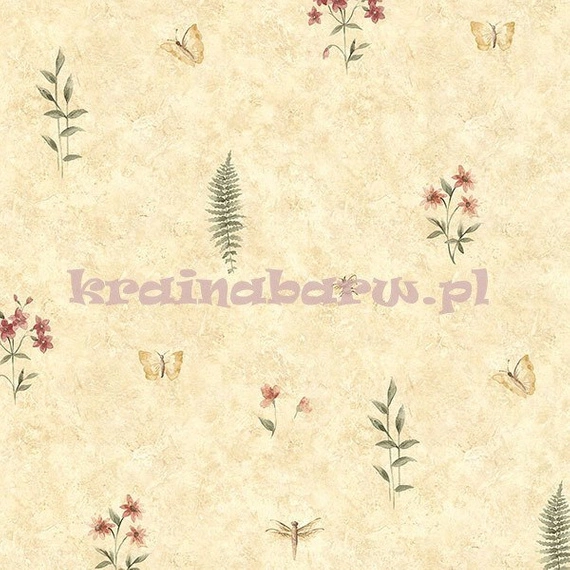 Tapeta w kwiatki, motylki, pszczółki na beżowym tle