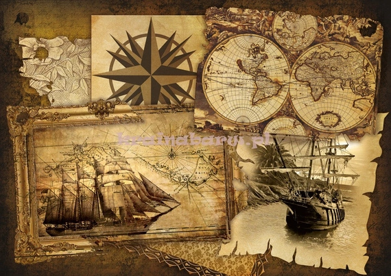 stary żaglowiec, mapa, sepia