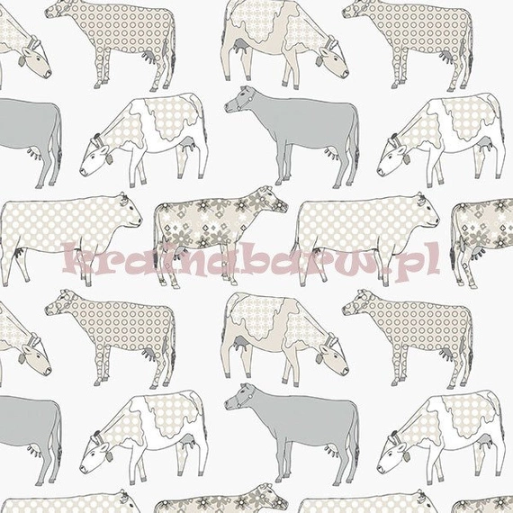 Tapeta z szarymi i beżowymi krówkami na białym tle