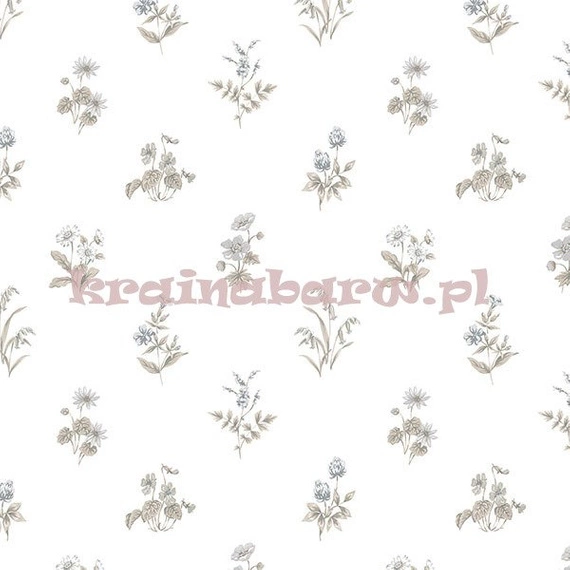 Tapeta w kwiatki, bratki beżowo szare na białym tle