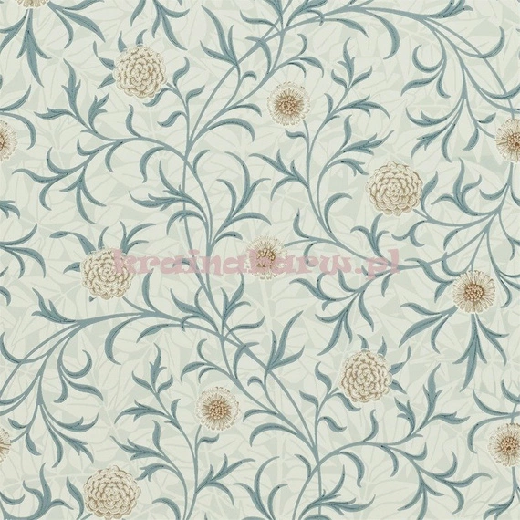 Wzór tapety SCROLL został zainspirowany średniowiecznymi iluminacjami książek. Morris zaprojektował Scroll w 1871 roku. Spowijające liście i meandry z kwiatów nagietka na tle liści pobranych z wzoru tapety Branch. Tapeta dostępna w czterech wybarwieniach kolorystycznych.