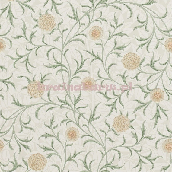 Wzór tapety SCROLL został zainspirowany średniowiecznymi iluminacjami książek. Morris zaprojektował Scroll w 1871 roku. Spowijające liście i meandry z kwiatów nagietka na tle liści pobranych z wzoru tapety Branch. Tapeta dostępna w czterech wybarwieniach kolorystycznych.