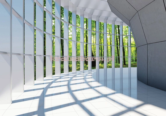 perspektywa;3D;okno;biały;tunel;korytarz;zielony;las;natura