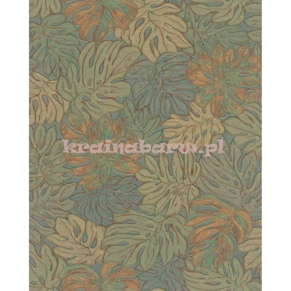 winylowa zmywalna tapeta z kolekcji Casual firmy Marburg z modnym dużym wzorem liści tropikalnej rośliny monstery(znanej również pod nazwą filodendron). Piękna struktura, wyczuwalnych w dotyku, zachodzących na siebie liści sprawia wrażenie efektu 3D. Wzór w metalicznie połyskujących zieleniach, złocie i miedzi, doskonale wpisuje się w modny styl w aranżacji wnętrz zwany „miejską dżunglą”, ożywi i ociepli minimalistyczne wnętrze, również sprawdzi się we wnętrzach w stylu retro, art deco, glamour.