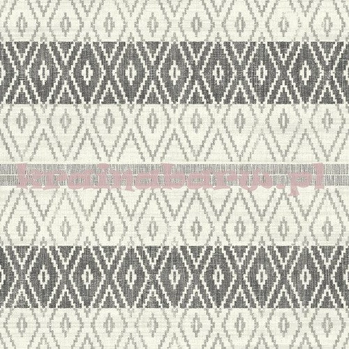 tapeta z geometrycznym wzorem w romby, utrzymana w etnicznym klimacie. Wzór rombów umieszczony jest na jasnym tle, przedzielony regularnymi dwoma ciemniejszymi poziomymi pasami o różnej szerokości. Całość utrzymana w odcieniach szarości od bardzo jasnej do ciemnej antracytowej.