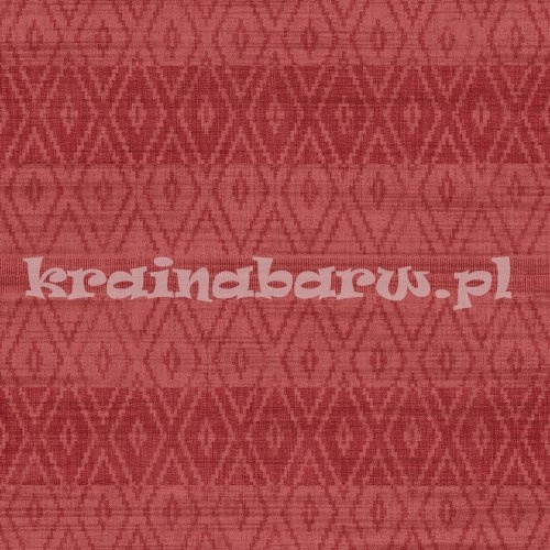 tapeta z geometrycznym wzorem w romby, utrzymana w etnicznym klimacie. Wzór rombów umieszczony jest na jasnym tle, przedzielony regularnymi dwoma ciemniejszymi poziomymi pasami o różnej szerokości. Całość utrzymana w odcieniach czerwieni.