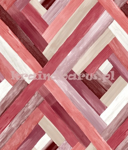 rolka ma długość 10,1mb., szerokość 52,1cm., oraz pasowanie wzoru co 61cm.To geometryczny wzór z rombami, utworzonymi przez linie sprawiające wrażenie namalowanych akwarelą, na których widać pociągnięcia pędzla i przenikające się kolory w odcieniach:czerwonego. beżowego , szarego. Prosty, geometryczny wzór w malowniczy i oryginalny sposób ozdobi Twoją ścianę.