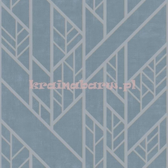 rolka ma długość 10,1mb., szerokość 52,1cm., oraz pasowanie wzoru co 52,1cm. Wzór przypominający stalowe konstrukcje. To proste, geometryczne kształty z różnej wielkości rombami,obwiedzione popielatymi liniami, które mają miejscami dyskretnie zarysowany złocisty połyskujący kontur. Całość umieszczona na ciemniejszym matowym zgaszonym niebieskim tle. Elegancka tapeta doskonale sprawdzi się w nowoczesnych, minimalistycznych, industrialnych aranżacjach, także w wytwornych wnętrzach w stylu art-deco i retro.