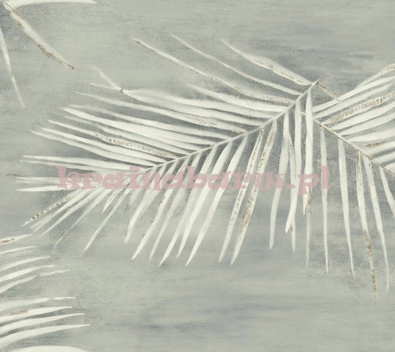 rolka ma długość:10.1mb, szerokość:45.7cm, oraz pasowanie wzoru co 61cm. Luksusowa tapeta z w malowniczym, imponującym wzorem liści palmy w rozbielonych szarościach, miejscami ozdobionych delikatnym metalicznym akcentem, umieszczonych na cieniowanym ciemniejszym tle w odcieniach koloru szarego. Elegancka tapeta z tropikalnym wzorem, to modny i stylowy akcent w salonie, jadalni, sypialni, gabinecie.