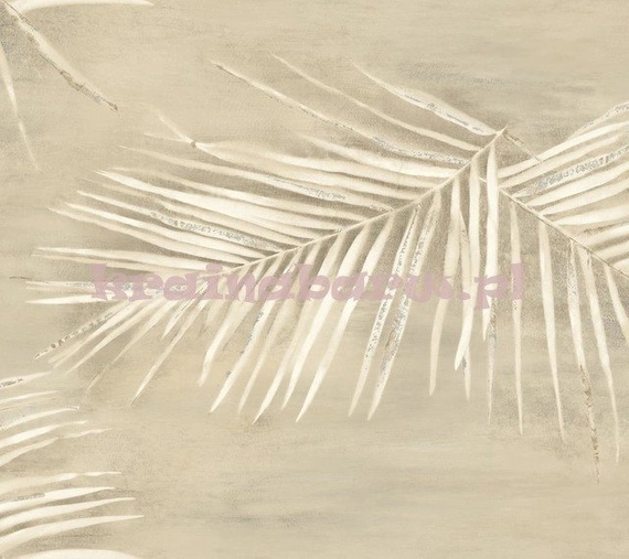 rolka ma długość:10.1mb, szerokość:45.7cm, oraz pasowanie wzoru co 61cm. Luksusowa tapeta z w malowniczym, imponującym wzorem liści palmy w rozbielonych bezach, kremach, miejscami ozdobionych delikatnym metalicznym akcentem, umieszczonych na cieniowanym ciemniejszym tle w odcieniach szaro beżowego koloru. Elegancka tapeta z tropikalnym wzorem, to modny i stylowy akcent w salonie, jadalni, sypialni, gabinecie.
