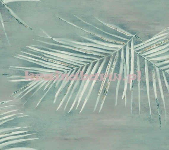 Romantyczna tapeta z wzorem liści palmy z metalicznym akcentem w turkusach