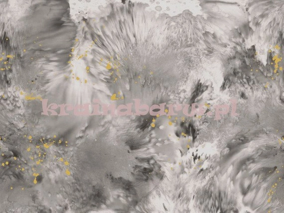 luksusowy panel Dreamchaser- Marzyciel z kolekcji YORK AVIVA STANOFF, to nowoczesna grafika z abstrakcyjnym wzorem, z przenikającymi się wzajemnie kolorami, z złocistymi akcentami, sprawiającymi wrażenie kleksów po chlapniętym pędzlu. Mural utrzymany w odcieniach szarości na satynowej, jedwabiście połyskującej gładkiej strukturze.