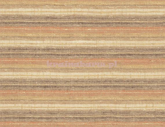 rolka ma szerokość 65,58cm i długość 8,23 metra, pasowanie wzoru co 13.25cm, jest na podkładzie papierowym. Tekstylna tapeta w kolorowe poziome pasy w odcieniach brązów, o strukturze z wyczuwalnymi w dotyku niteczkami, które mają delikatny jedwabisty połysk. Wspaniale podkreśli urok i ociepli współczesne aranżacje.