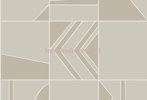 rolka ma długość 10mb, szerokość 53cm, oraz pasowanie wzoru co 64/21,34cm. Prosty, przejrzysty abstrakcyjny geometryczny wzór z matowym beżowym tłem, które jest poprzecinane równymi połyskującymi jasnymi liniami. Dzielą one tapetę na równe prostokąty, w których znajdują się koła, półkola, trójkąty, trapezy, prostokąty w opalizującym metalicznie połyskującym złociście kolorze. Tapeta z geometrycznym wzorem doskonale komponuje się z prostymi nowoczesnymi, minimalistycznymi, industrialnymi wnętrzami, stanowiąc efektowne i modne wykończenie stylizacji.
