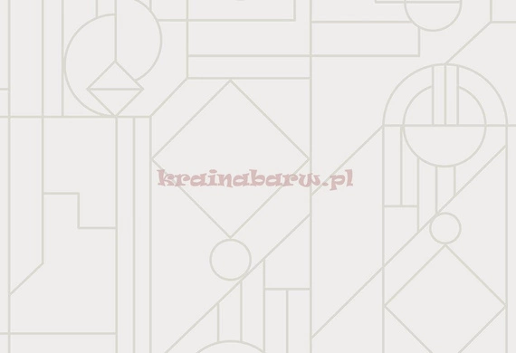 rolka ma długość 10mb, szerokość 53cm, oraz pasowanie wzoru co 64/32cm. Tapeta zainspirowana stylem Art Deco. Geometryczne figury, koła i trójkąty tworzą intrygujący widok, podkreślony lekko wyczuwalnymi w dotyku połyskującymi brokatowymi srebrzystymi konturami. Wzór umieszczony jest na matowym białym tle. Luksusowa, pełna elegancji tapeta idealnie pasuje do współczesnych nowoczesnych wnętrz.