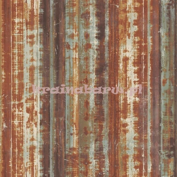 rolka ma długość 10,05m, szerokość 53cm, oraz przesunięcie wzoru co 53cm. Tapeta przypominająca starą pordzewiałą metalową blachę z warstwami farby, miejscami metalicznie złociście połyskującą, w odcieniach rdzawej czerwieni, koloru niebieskiego, zielonego, odrobiny fioletu. Efektowna i oryginalna tapeta, to idealne uzupełnienie aranżacji pokoi młodzieżowych, wnętrz w stylu minimalistycznym, nowoczesnym, industrialnym.