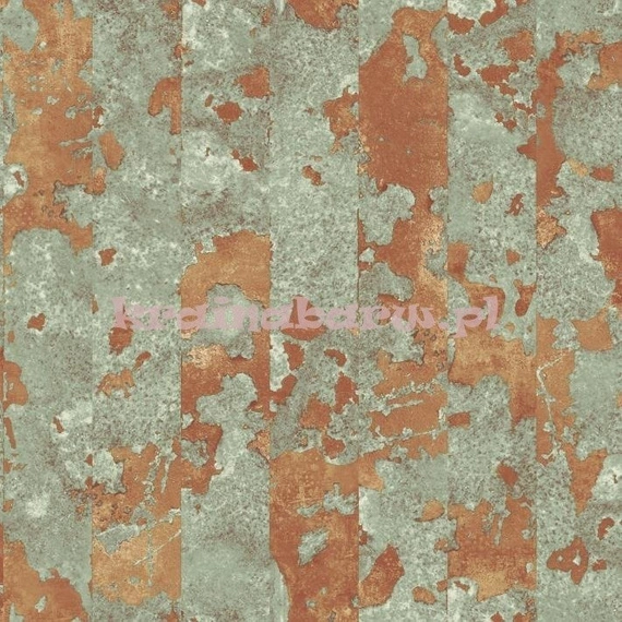 rolka ma długość 10,05m, szerokość 53cm, oraz przesunięcie wzoru co 26.5cm. Tapeta z wzorem starej blachy z pionowym układem, z widocznymi śladami rdzy i łuszczącej się farby. Tapeta w odcieniach połyskujących brązowo rdzawych kolorów, oraz w matowym zielono-niebieskim kolorze patyny. Efektowna i oryginalna tapeta, to idealne uzupełnienie aranżacji pokoi młodzieżowych, wnętrz w stylu industrialnym, minimalistycznym, nowoczesnym.