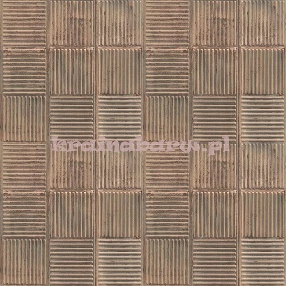 rolka ma długość 10,05m, szerokość 53cm, oraz przesunięcie wzoru co 26.5cm. Tapeta z wzorem ryflowanych kafelek z rowkami, żłobieniami, na których widać przetarcia, nierówności i upływ czasu. Jest w odcieniach brązów, szarości, na które naniesiono opalizujący miedziano- czerwony blask. Efektowna i oryginalna tapeta, to idealne uzupełnienie aranżacji pokoi młodzieżowych, wnętrz w stylu industrialnym, minimalistycznym, nowoczesnym.