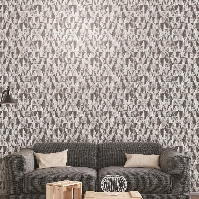 Modna tapeta geometryczna trójkąty w beżach brązach