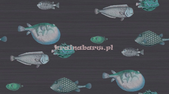 rolka ma długość 10m, szerokość 68,5cm, pasowanie wzoru co 76,2cm. Oryginalna tapeta zainspirowana głębinami morskiego życia, ukrywającego fascynującą, tajemniczą naturę. Wielkie imponujące, morskie ryby niebiesko zielone pływają na lekko cieniowanym tle w odcieniu ciemnego granatu. Kompozycja i skala Acquario tworzy z artyzmem wyjątkowy i zachwycający wzór. Doskonałej jakości luksusowa tapeta, stworzy oryginalny i magiczny klimat w każdym wnętrzu, w gabinetach, salonach, jadalniach, holach, sypialniach.