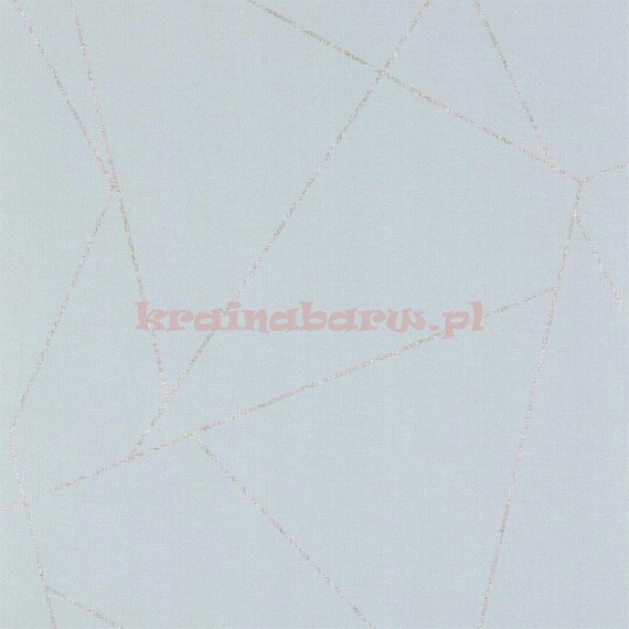 Wysokiej jakości winylowa tapeta na podłożu papierowym ma szerokość 68,5cm, długość 10,05 metra, pasowanie wzoru co 76,2cm. Modna nowoczesna tapeta z połyskującymi metalicznie liniami, przecinającymi się pod różnymi kątami, tworzącymi duże imponujące wzory z trójkątami, wielokątami. Wzór umieszczony jest na prostym tle przypominającym płótno, w odcieniu koloru szarego. To oryginalny, wzór, który w zjawiskowy sposób ozdobi wnętrza najbardziej wymagających klientów.