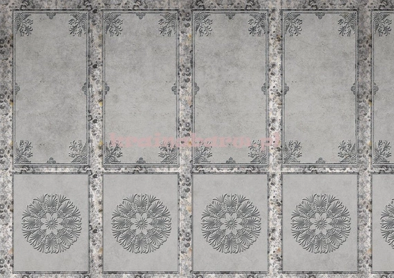 Wzór z kolekcji CLassic, inspirowany wielką sztuką. Tapeta powstała z połączenia zdjęć zdobnych sztukaterii, z zabytkowych pałacy i dworków oraz reprodukcji obrazu XVIII w malarza. Zaproś sztukę do swojego wnętrz. Tapeta jest niezwykle zdobna i wspaniałe prezentuje się na strukturze betonu oraz lnu dodając wnętrzu elegancji.