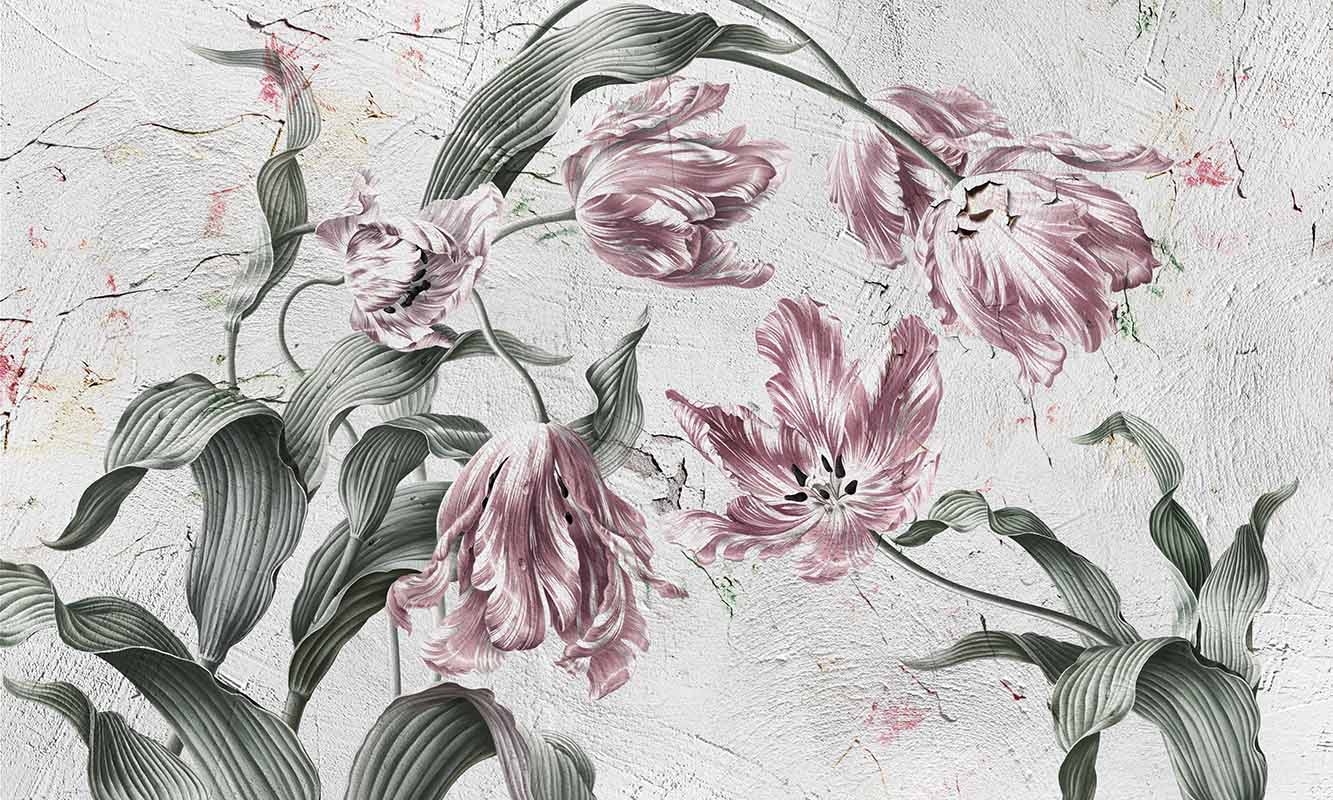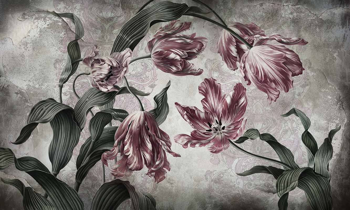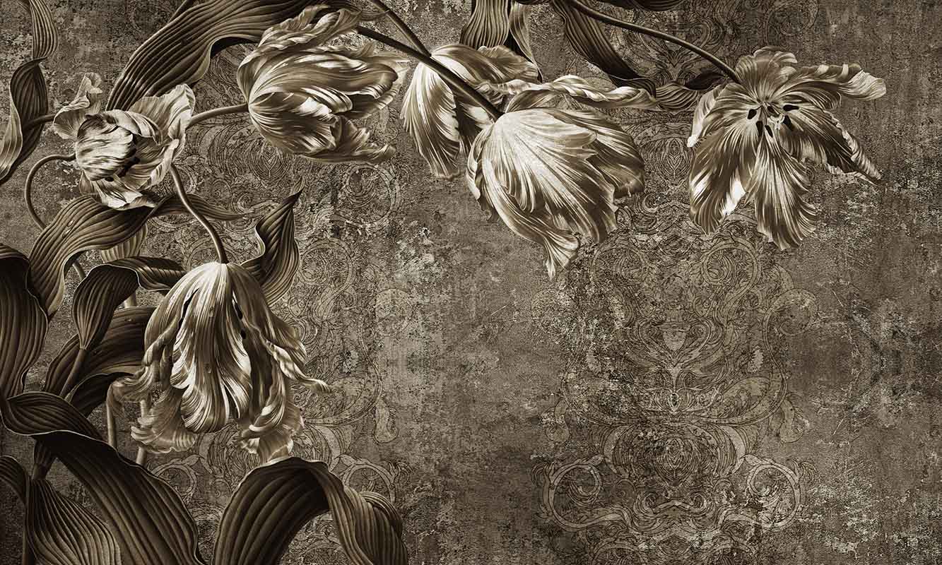 kwiaty, tulipany, rośliny, vintage, luksusowe, 3d, Wonderwall, botaniczne, natura, tynk, ściana
