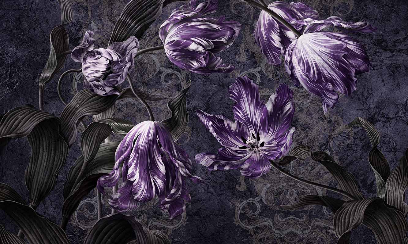 Fototapeta z nowoczesną grafiką, w dotyku lekko chropowata, sprawia wrażenie głębi i przestrzeni tworząc efekt 3D. Imponujące fioletowo białe kwiaty tulipanów na ciemnym finezyjnym tle, stworzą niezwykły klimat w Twoim wnętrzu. Zjawiskowa fototapeta doskonale wpisuje się w modne aranżacje wnętrz nawiązujące do natury.