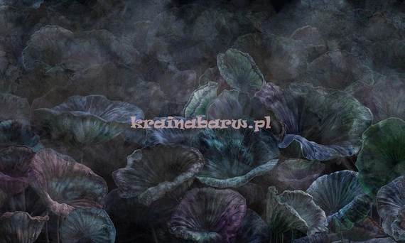Fototapeta z nowoczesną grafiką, w dotyku lekko chropowata, sprawia wrażenie głębi i przestrzeni tworząc efekt 3D. Wzór zainspirowany wodnymi liliami i ich wspaniałymi, unoszącymi się na wodzie liśćmi, które układają się we wspaniałą, malownicza kompozycję. Przenikające się wzajemnie kolory w rozmytych odcieniach fioletu, niebieskiego, zielonego, szarego, tworzą spektakularny efekt. Zjawiskowa fototapeta doskonale wpisuje się w modne aranżacje wnętrz nawiązujące do natury.