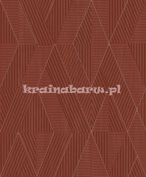 rolka ma długość 10,05m, szerokość 53cm, oraz przesunięcie wzoru co 64cm. Tapeta z przyjemną, wyczuwalną w dotyku strukturą z geometrycznym wzorem przedstawiającym różnej wielkości romby wypełnione delikatnie połyskującymi prążkami, liniami. Tapeta jest w odcieniach ciemnej ceglastej czerwieni. Efektowny, zjawiskowy graficzny wzór sprawia wrażenie głębi i przestrzeni, tworząc efekt 3D. To idealne uzupełnienie aranżacji wnętrz w stylu minimalistycznym, nowoczesnym, industrialnym.
