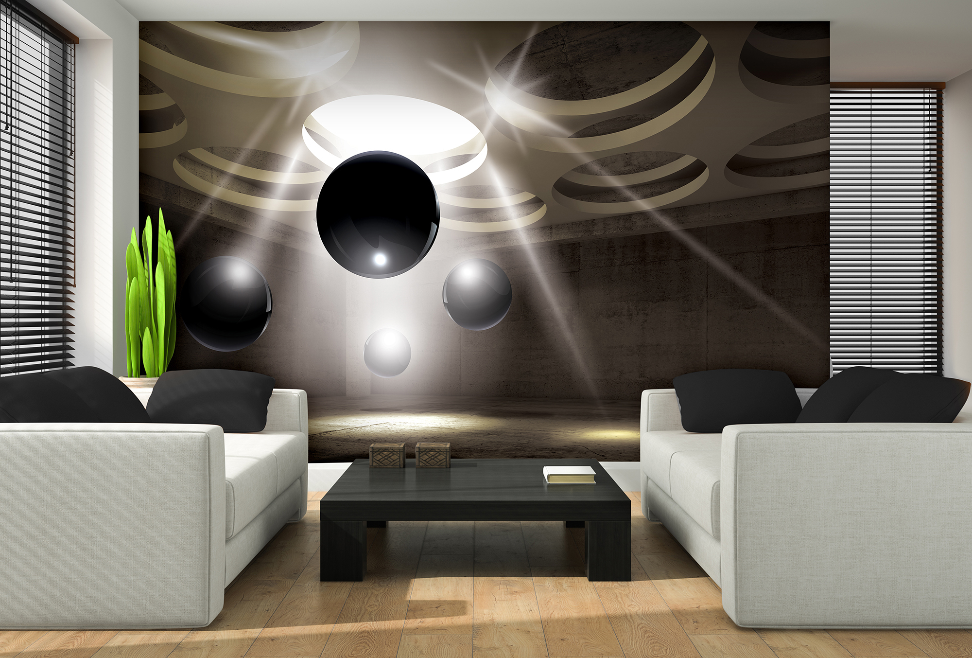 Fototapeta 3320 Czarne kule w betonowym pomieszczeniu