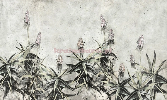 Fototapeta z nowoczesną grafiką, z wyczuwalną w dotyku strukturą, sprawia wrażenie głębi i przestrzeni tworząc efekt 3D. Atrakcyjny wzór został zainspirowany japońską techniką litograficzną- mokulito. Zachwycające liście i kwiaty agawy umieszczone są na betonowym tle. Zjawiskowa, doskonałej jakości fototapeta w modnych szarościach, mistrzowsko wpisuje się aktualne trendy w aranżacji wnętrz, tworząc eleganckie i wyrafinowane wnętrze z klasą.