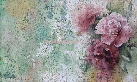Fototapeta z nowoczesną grafiką, z wyczuwalną w dotyku strukturą, sprawia wrażenie głębi i przestrzeni tworząc efekt 3D. Malownicze duże kwiaty w pastelowych odcieniach koloru różowego umieszczone są na tle przypominającym popękaną, łuszczącą się na ścianie farbę w odcieniach zieleni. Romantyczny wzór doskonale wpisuje się we współczesne wnętrza, tworząc w nich oryginalny i modny klimat.